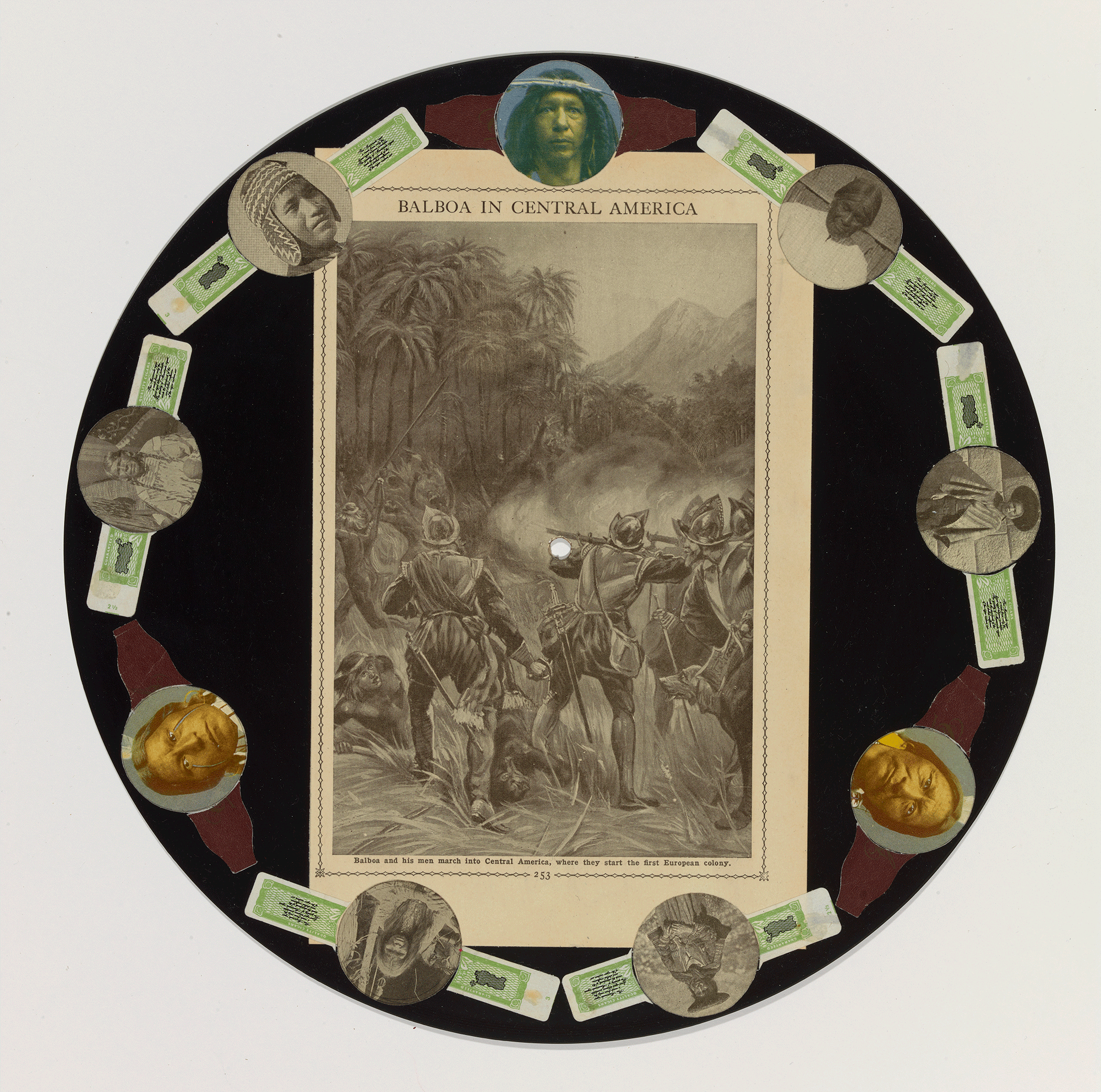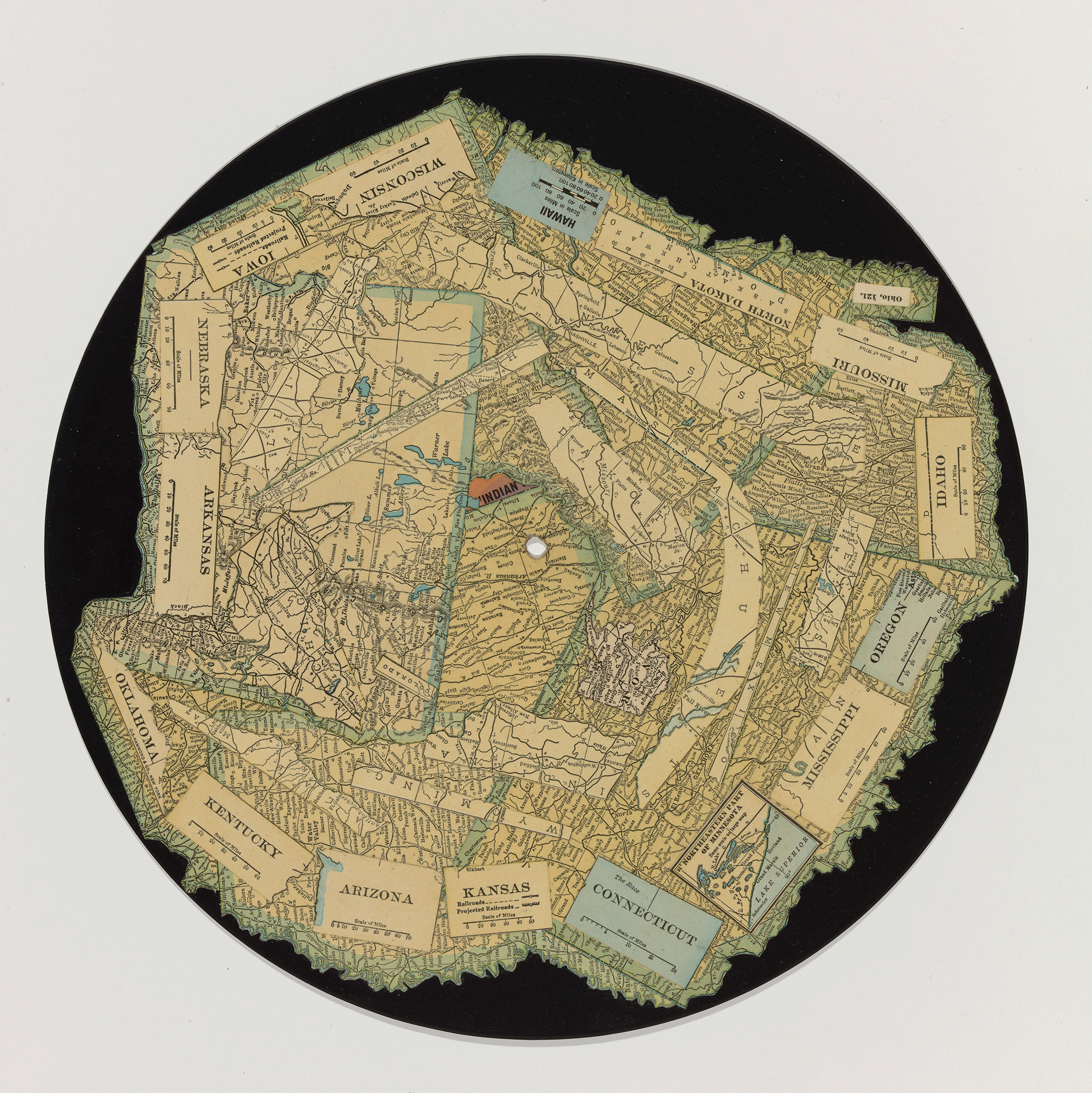 Record: Indian Country, 1993, cut-and-pasted printed paper on record, 12 inches diameter