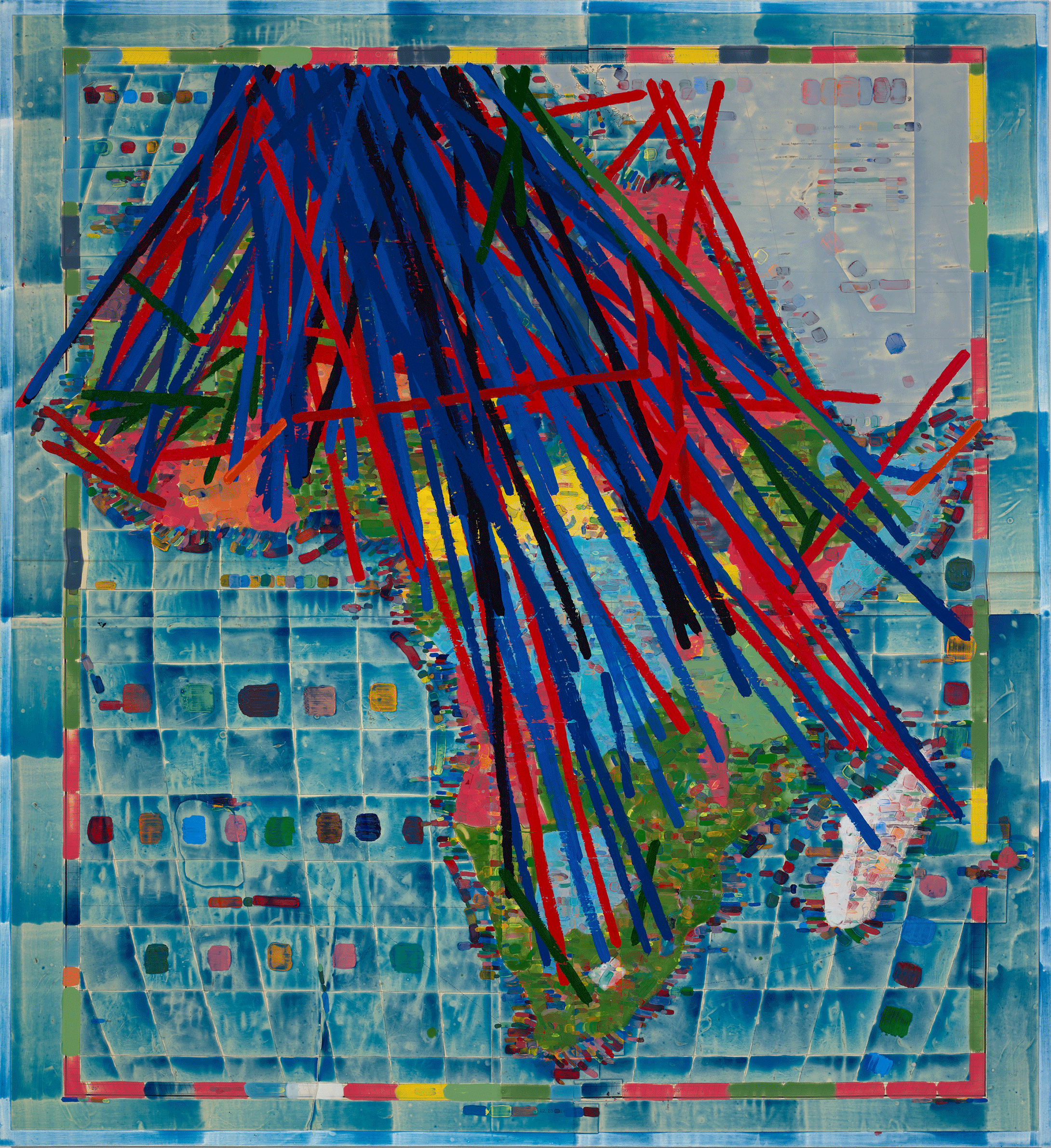Colonizing in Africa Since 1400, 2021-23, acrylic, ink, and color pencil on cut- and-pasted printed paper on board, 74 x 68 x 2 ¼ inches