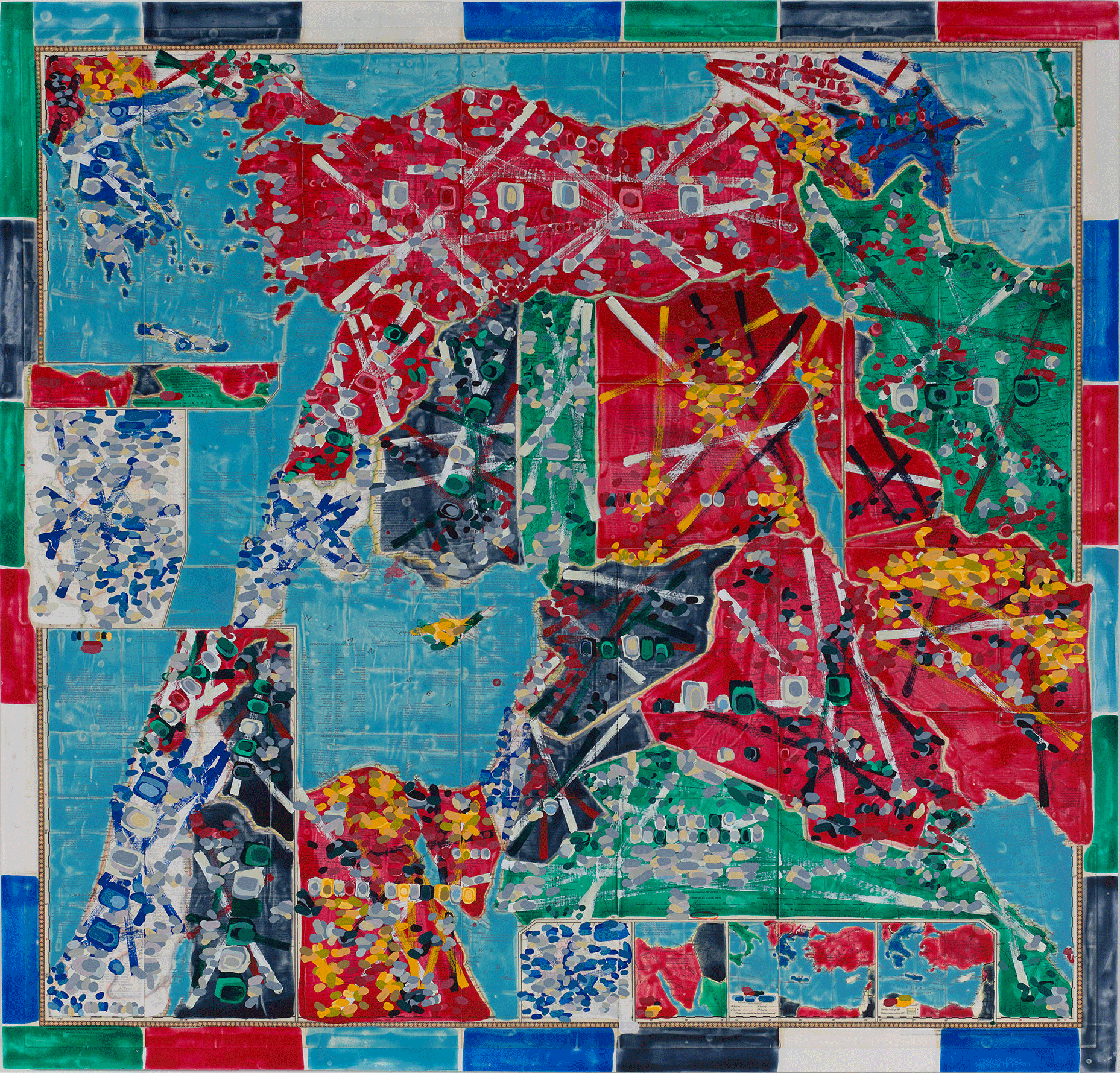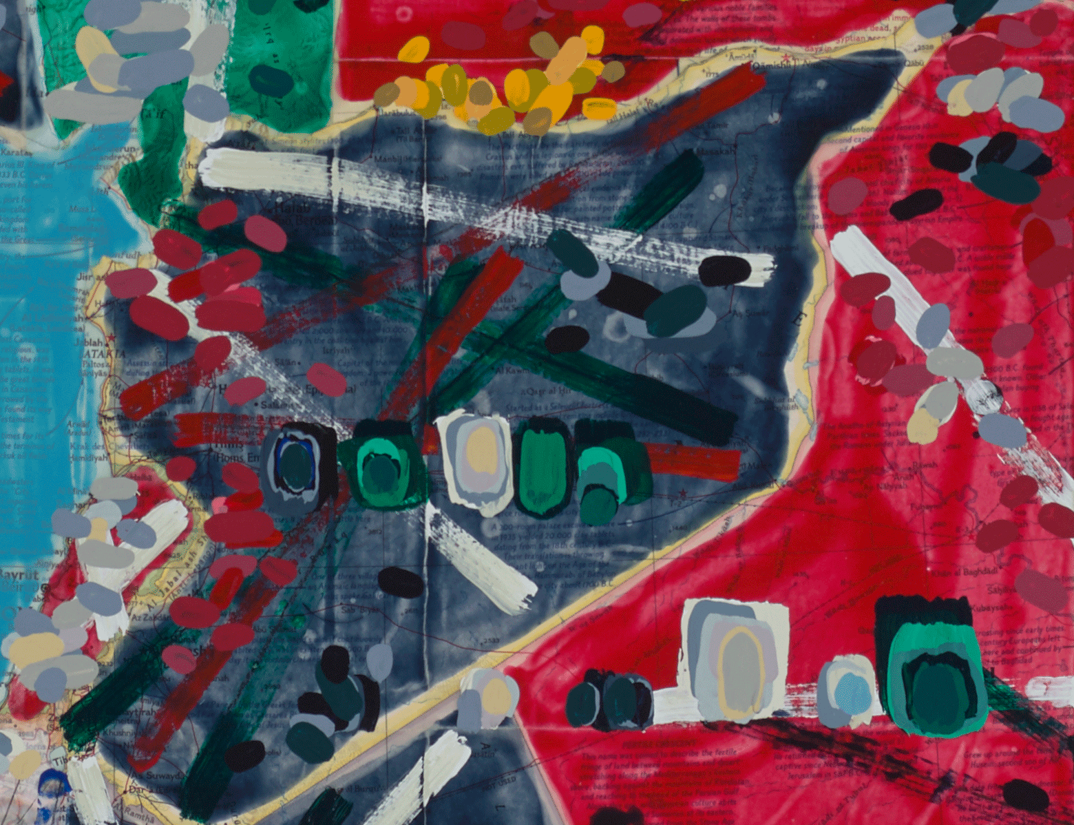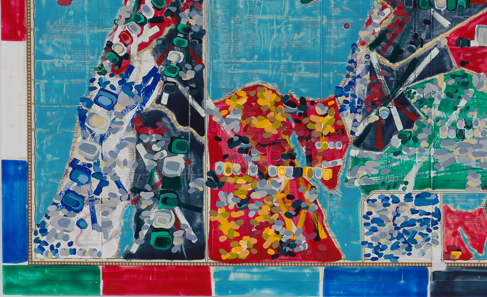 Contest - Middle East, Fragmented (with nationalist colors), 2018, acrylic on cut- and-pasted printed paper on board, 41 x 43 inches