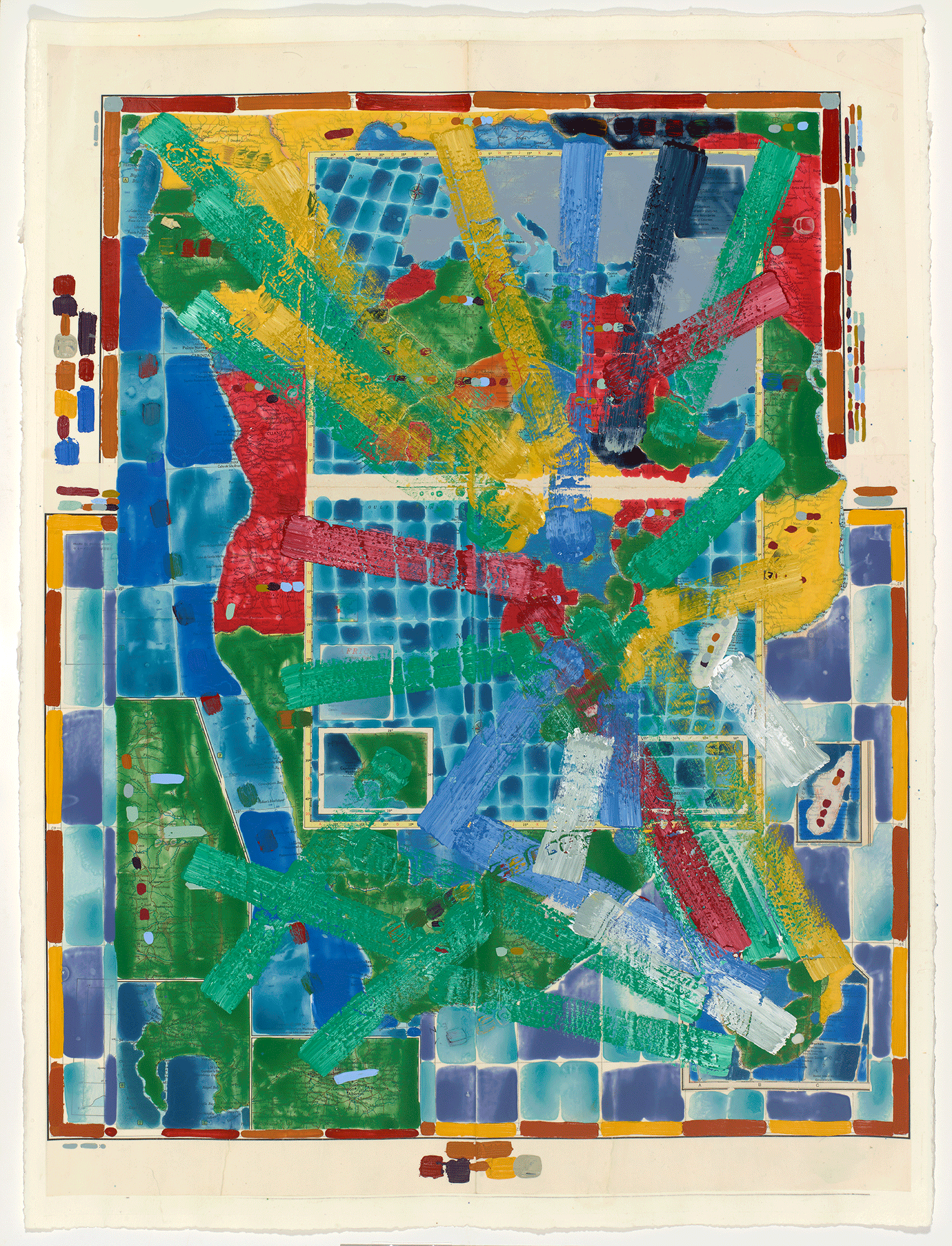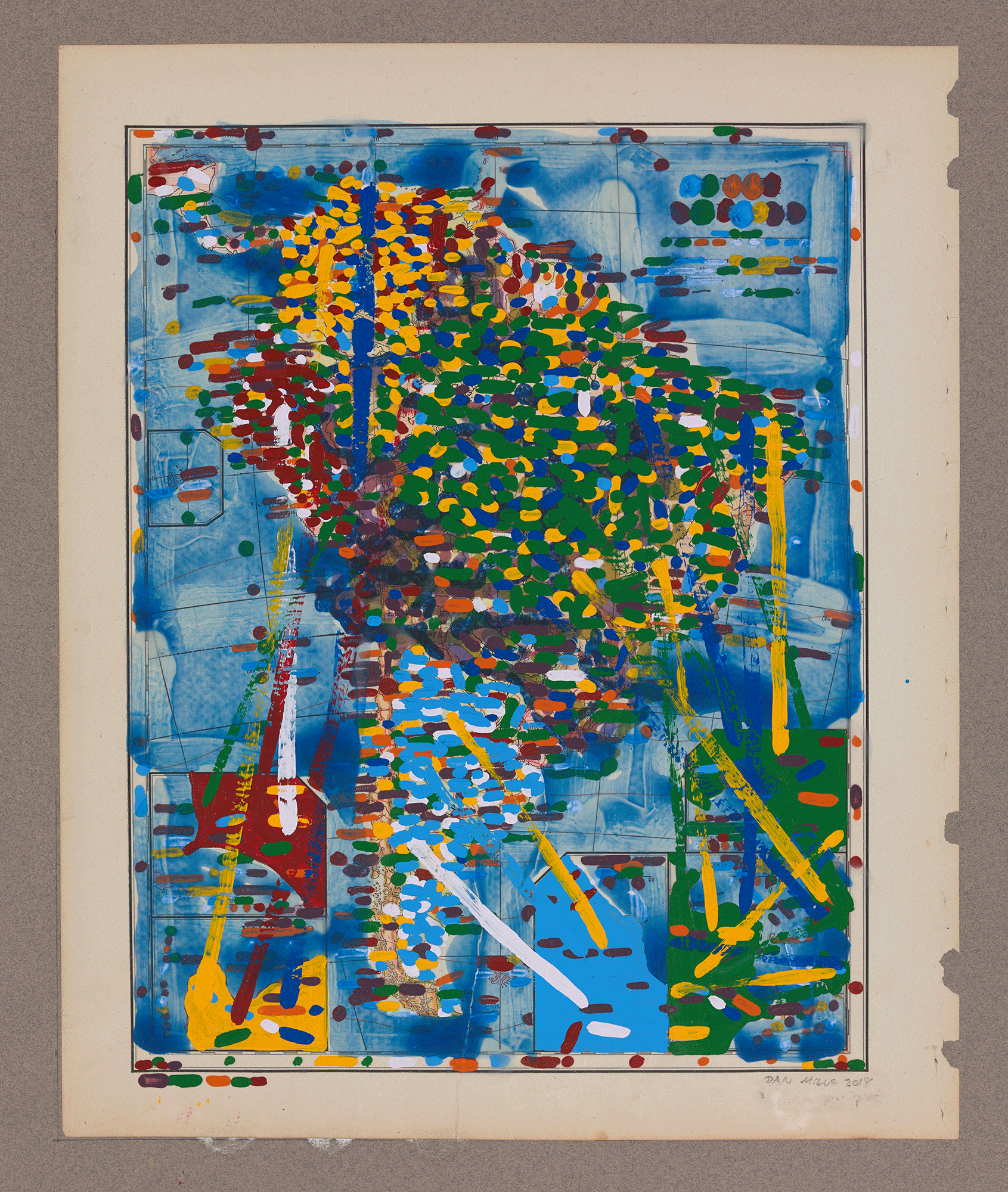 Contest—Africa (with nationalist colors), 2019, acrylic on printed paper, 30 x 22 1/2 inches.