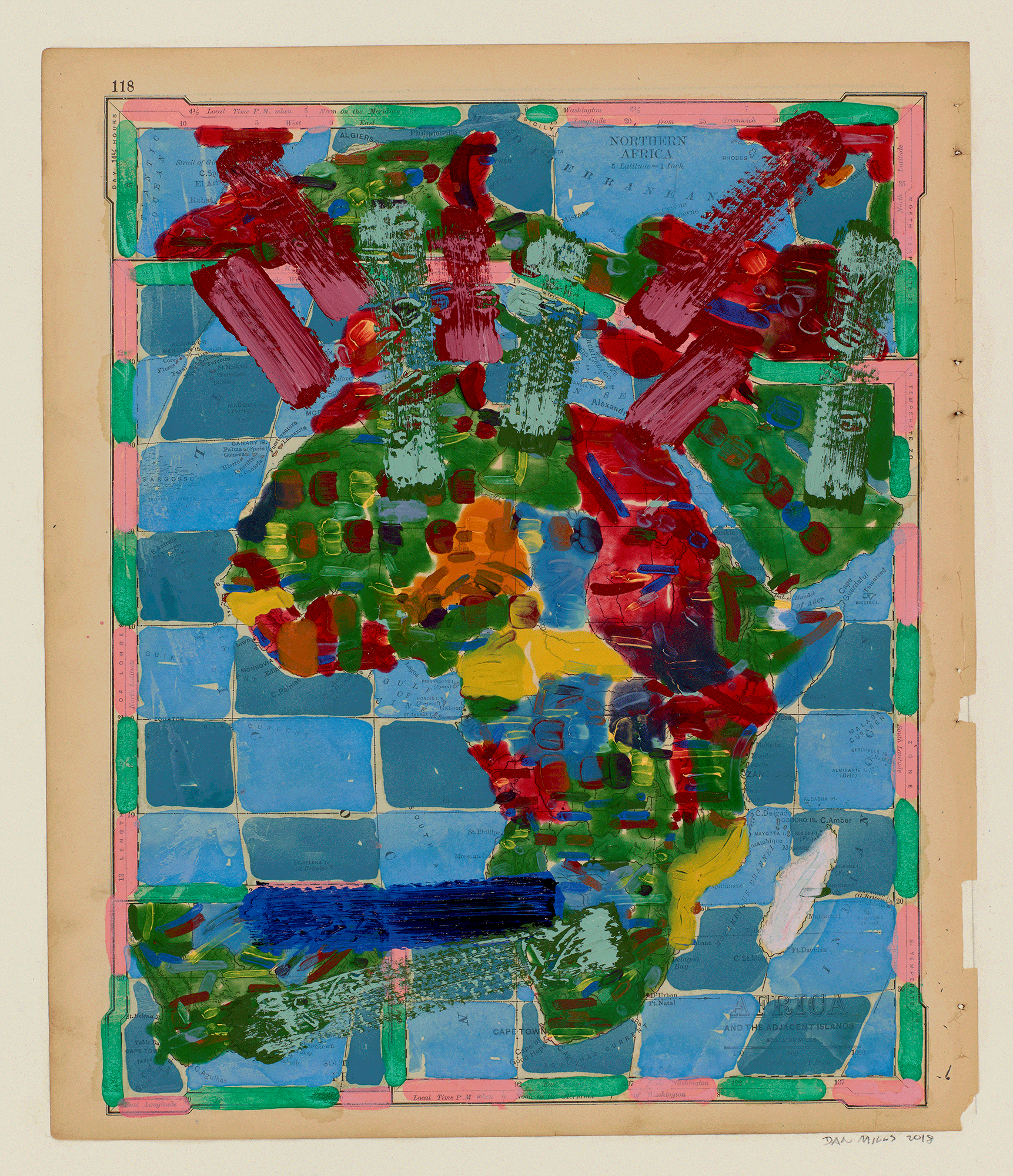 Contest - Africa and Surrounds (with nationalist colors and including the colonial era), 2018, acrylic, watercolor, ink on printed paper, 11 ½ x 9 7/8 inches