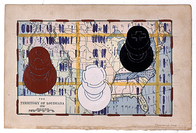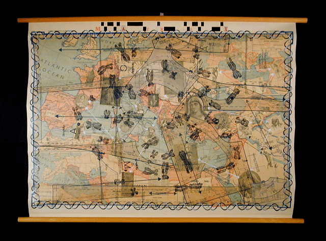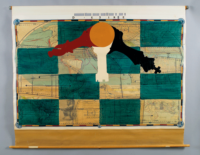 For all its wit and humor, these genuinely naughty works evoke the darker side of culture, when unquestioned assumptions of racial or economic superiority are evoked under the guise of objective education. But no map is truly objective: each is merely a projection, one person’s attempt to visualize the unseeable, one child’s attempt to draw in the lines that will govern a life.