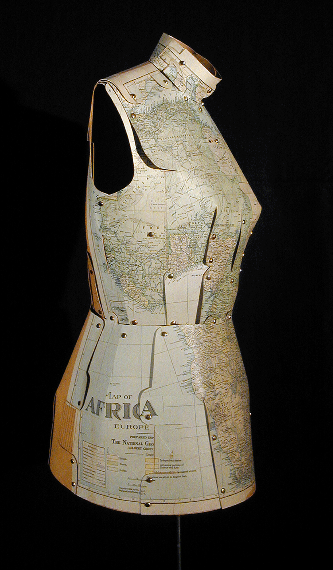 Continent, 1998, cut-and-pasted printed paper, mixed media, 29 x 14 x 14 1/2 inches