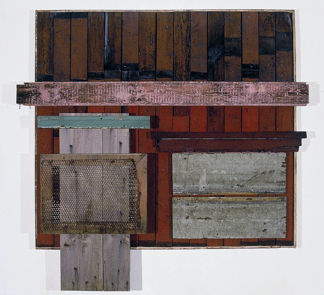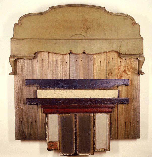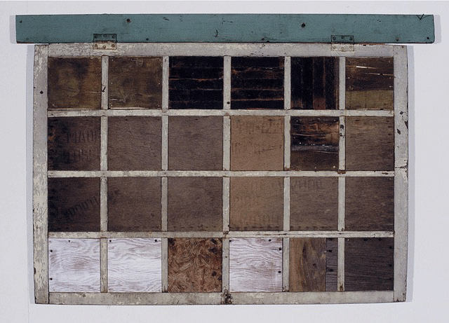 Board-up, 1989, Found (polychromed) wood & hardware, acrylic, 37 x 53 3/4 x 3 3/4 inches.