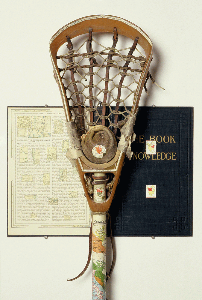 Territory Game: Lacrosse, 1994, cut-and-pasted printed paper, mixed media, 40 1/2 x 14 x 3 1/4 inches