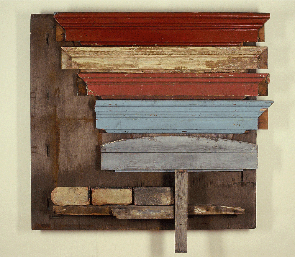 Homage To Mopetown, 1990, Found (polychromed) wood, brick, hardware, 49 1/2 x 52 x 11 inches