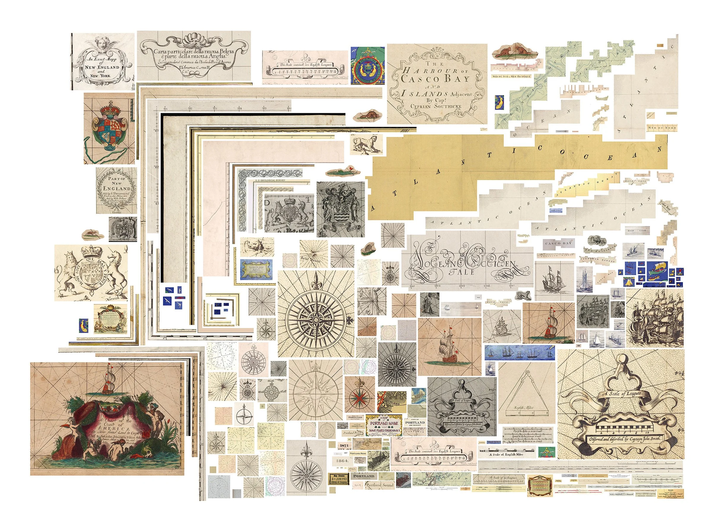Stuff from Maps of or that include Portland, 2016, digital collage, 34 5/8 x 46 1/2 inches