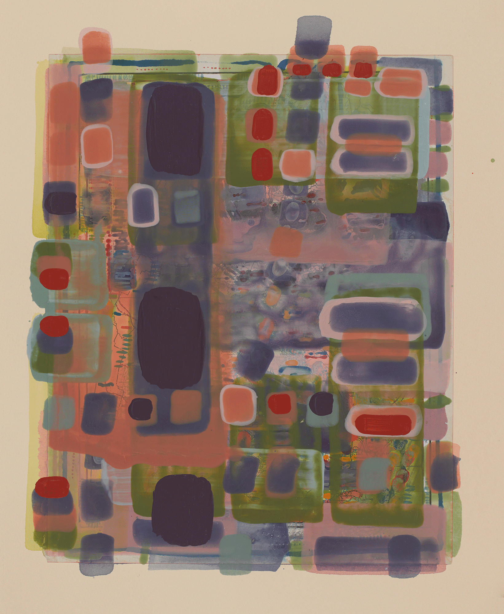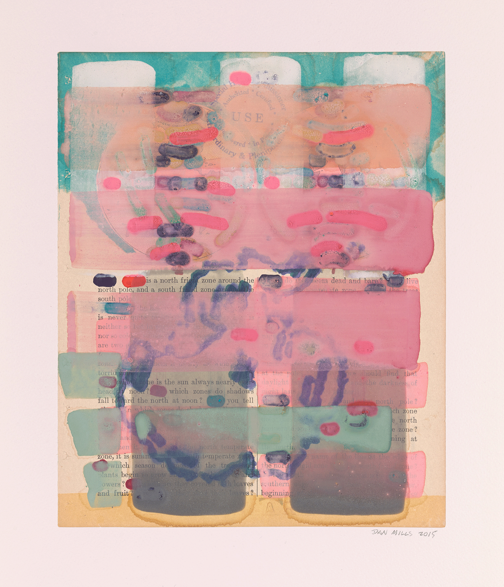 Overpainting Maine II, 2015, acrylic, watercolor, ink on printed paper, 11 1/4 x 15 inches