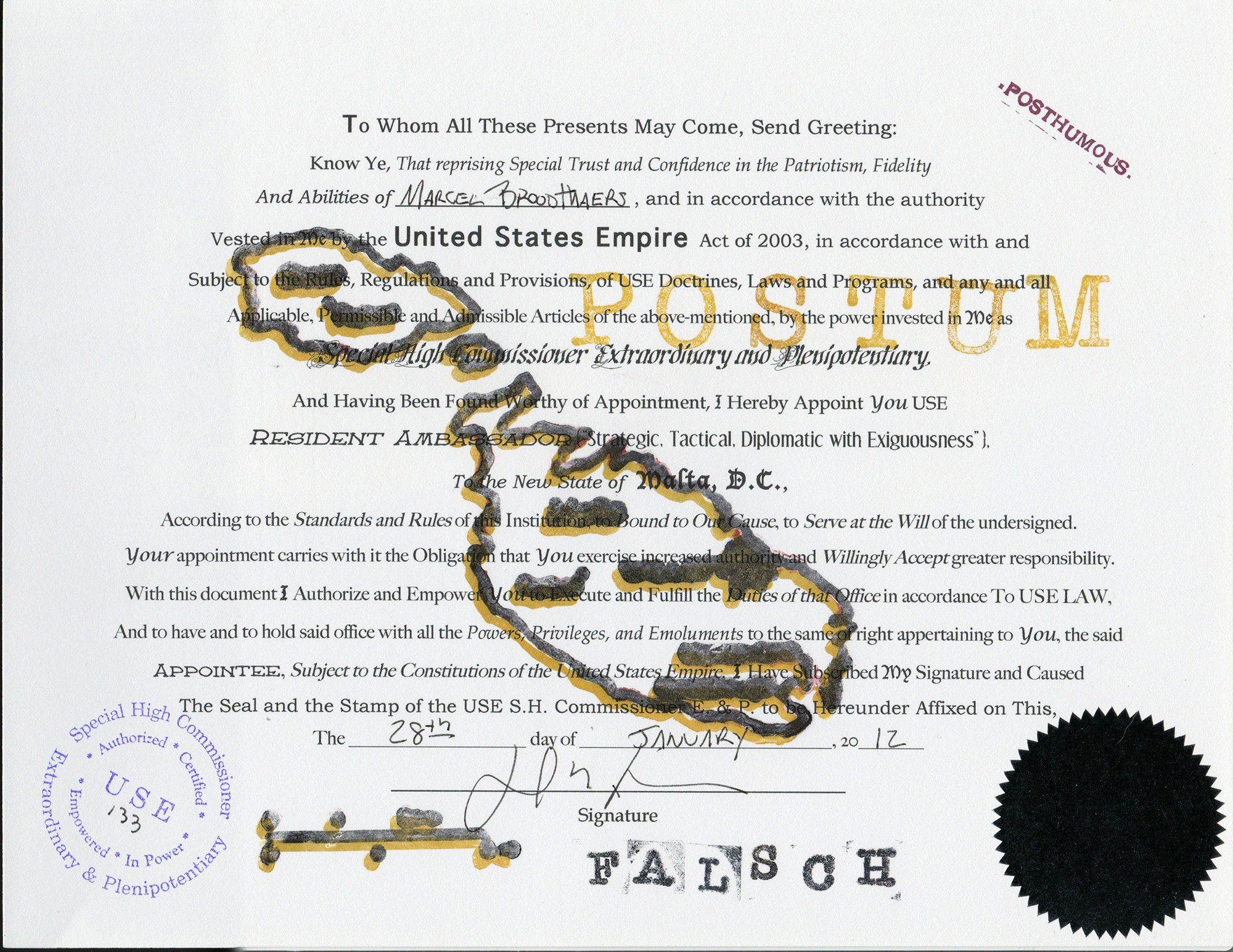 #133 Marcel Broodthaers, Resident Ambassador, Malta, DC, 2012 (Falsch)
