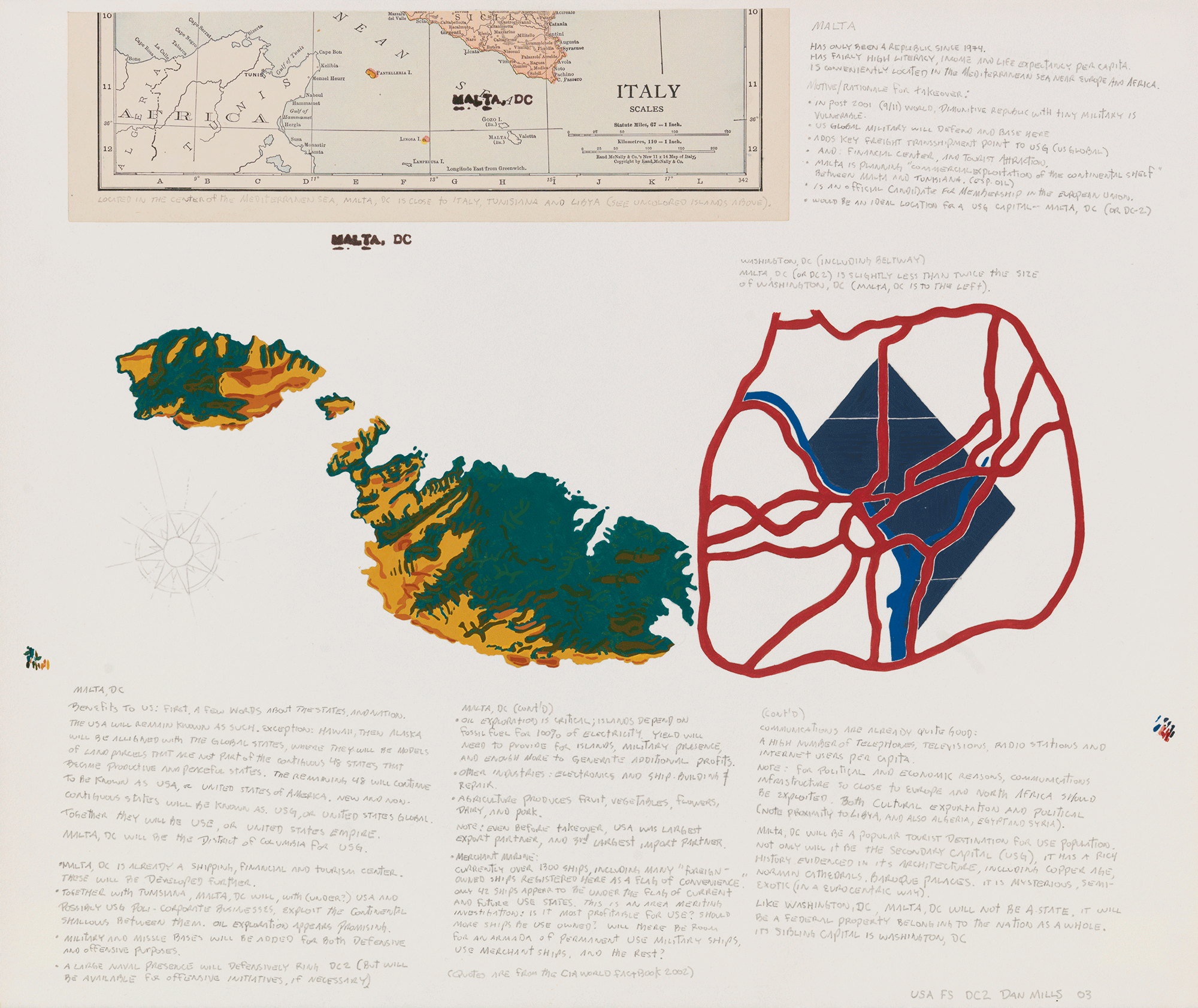 Malta, DC, 2003, acrylic, collage, graphite, ink on paper, 14 1/8 x 16 7/8 inches